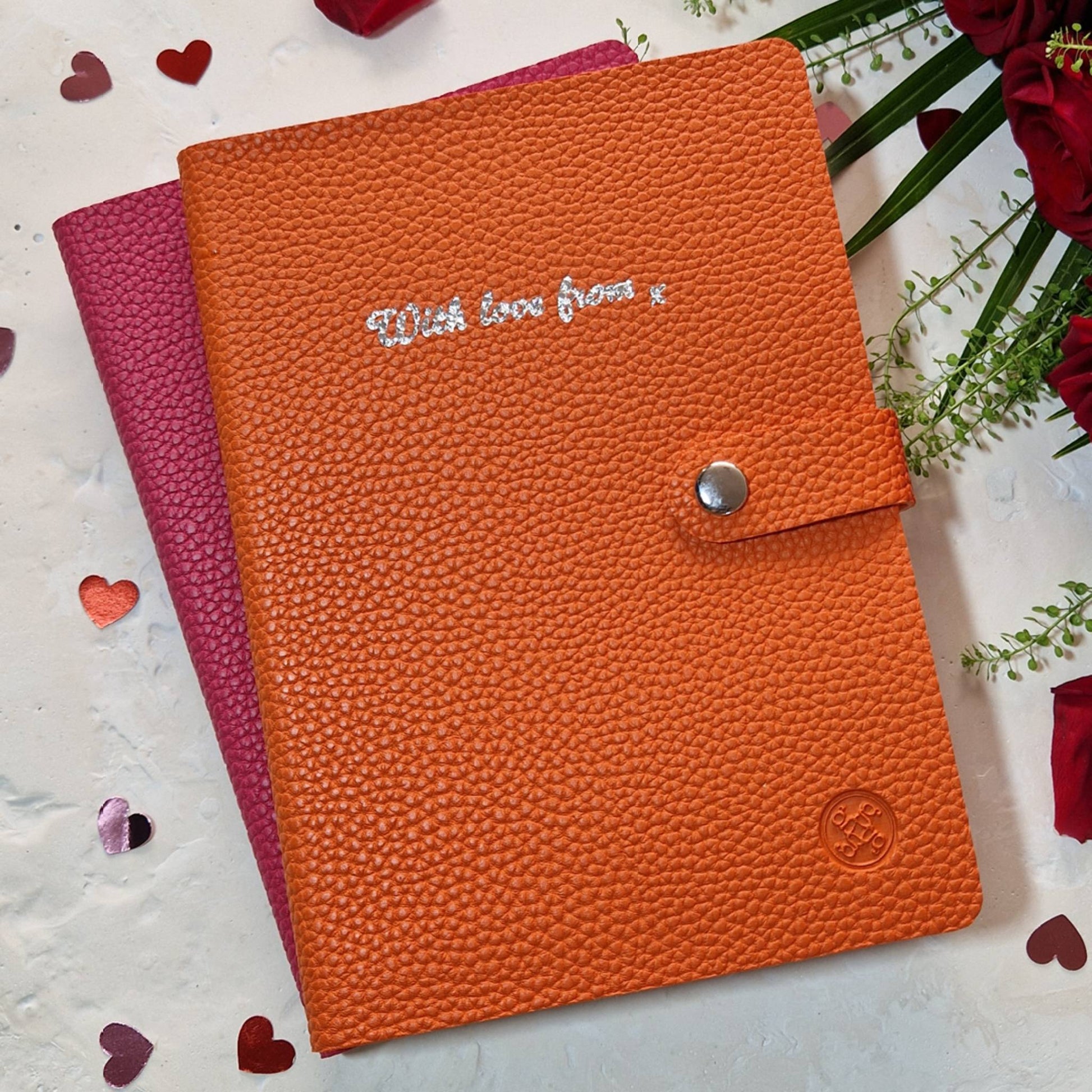 Simply choose from three fiery colours and we’ll do the rest by adding a silver hot foil message ‘With love from x’ to the cover.