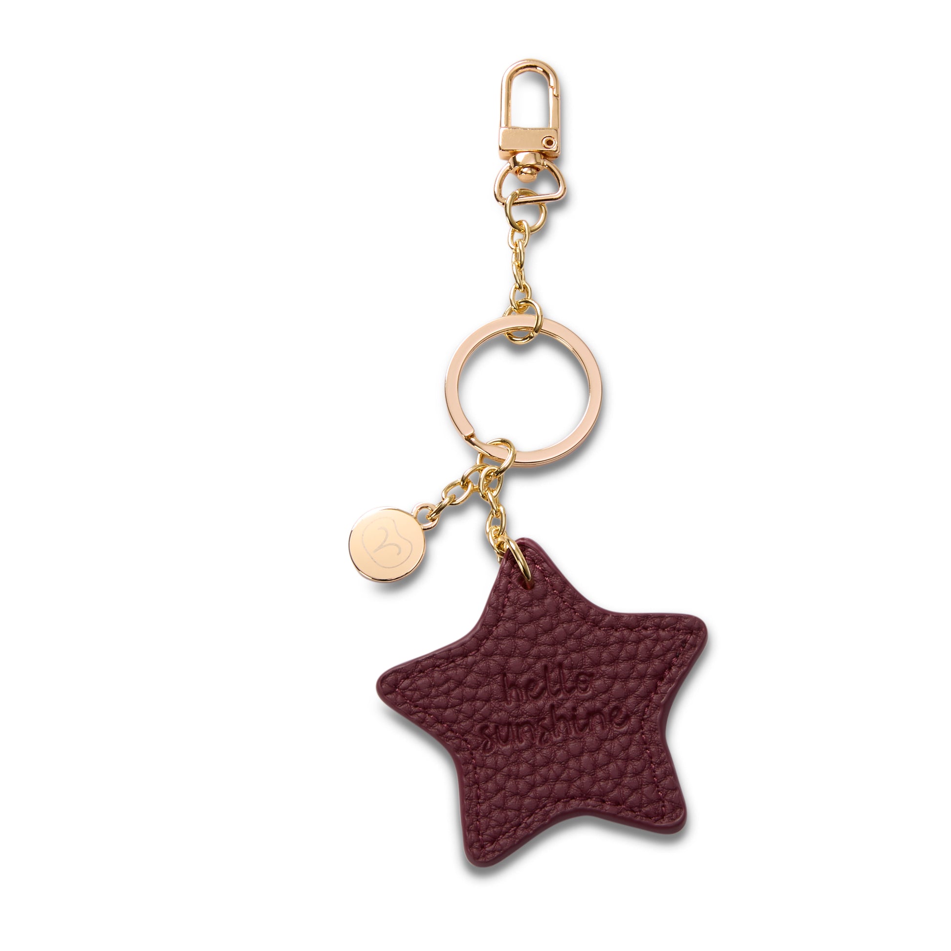 Beautiful star shape keyring, finished with a goodeehoo engraved tag featuring the signature owl design, keychain and additional handy clip in shiny gold hardware.